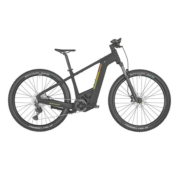 Die einstellbare Federgabel von Suntour hat 120 mm Federweg. In Verbindung mit den breiten Schwalbe Nobby Nic Evo Reifen im Format 29×2,6“ bietet die Gabel angenehmen Fahrkomfort nicht nur im Gelände. Am Bergamont E-Revox Expert ist eine zuverlässige 1×12 Schaltung mit Shimano XT Schaltwerk verbaut. Durch den großen Zahnkranz mit 10-51 Zähnen ist die Übersetzungsbandbreite sehr hoch. Die hydraulischen Scheibenbremsen kommen von Tektro. Durch ihre Vierkolben-Bauweise bieten sie eine besonders hohe Bremsleistung. Der Innovative Steuersatz von Acros ermöglicht das Einführen der Züge in den Rahmen und verfügt zusätzlich über einen Block Lock Lenkanschlag.