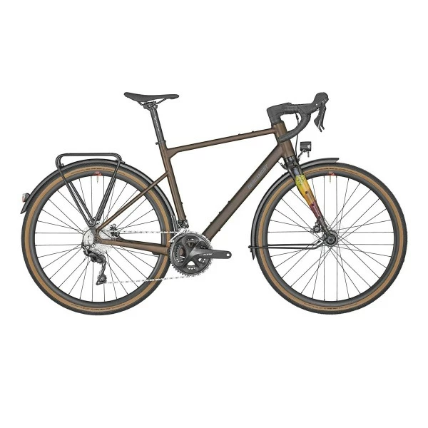 Die Komponenten der Shimano 105 Gruppe werden im Rennrad-Bereich auch bei Amateurrennen gefahren. Nicht ohne Grund: Die 2×11 Schaltung wechselt die Gänge präzise wie ein Uhrwerk und auf die hydraulischen Scheibenbremsen ist bei jedem Wetter Verlass. Die Schwalbe G-One Allround Bereifung in 40 mm Breite vereint Leichtlauf mit Traktion und angenehmem Fahrkomfort. Für die Alltags- und Reisetauglichkeit ist das Bergamont Grandurance RD 7 mit hellen Leuchten von Herrmans, einem leichtlaufenden Nabendynamo von Shimano sowie breiten Schutzblechen und einem belastbaren Gepäckträger ausgestattet. Pedale sind nicht im Lieferumfang enthalten.