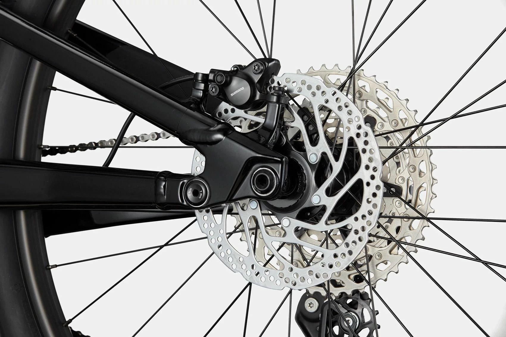 - (F) Shimano MT400, 15x110mm thru-axle / (R) Shimano MT410, 12x148mm thru-axle