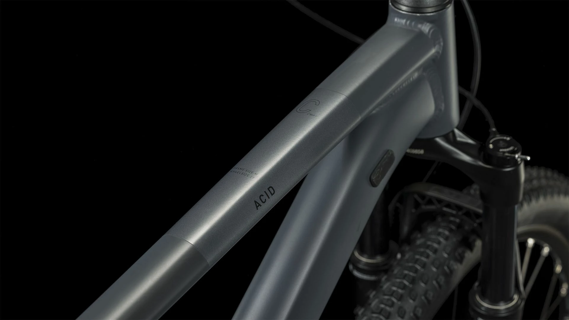 Der Acid Rahmen besticht mit seinem supercleanen Look. Verantwortlich dafür: die im Smooth Welding Verfahren hergestellten Verbindungen am Steuerrohr und Sattelstützenprofil. Außerdem haben wir ihm ein geschraubtes Tretlager gegeben und die Züge ins Innere verlegt, damit sie ihre Aufgabe lange machen und leicht gewartet werden können. Es gibt sogar eine Aufnahme für eine Flat Mount Scheibenbremse, die nahtlos in die Seitenständeraufnahme integriert ist. Montagepunkte für ACID Schutzbleche und Gepäckträger sind auch mit dabei. Die überarbeitete Geometrie hat ein niedrigeres Oberrohr und konifiziertes Steuerrohr für noch zuverlässigeres Handling. Außerdem bleibt viel Platz für breite, griffige und komfortabel rollende 2.1 Zoll Reifen. Auch haben wir unser SizeSplit System jetzt noch breiter aufgestellt – dadurch findest du mit Sicherheit die perfekt passende Kombination aus Acid Laufrad- und Rahmengröße für dich. Und da mit wachsendem Fahrkönnen auch die Ansprüche steigen, kann das Chassis mit einer versenkbaren Sattelstütze ausgestattet werden.