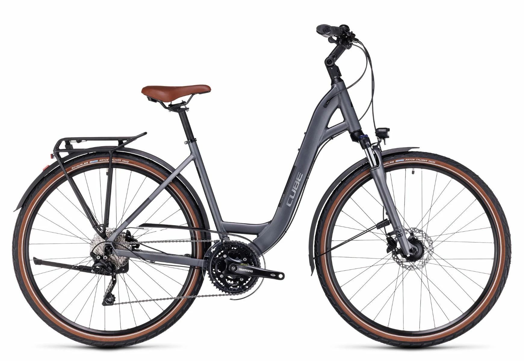Das Herzstück unserer Touring Serie ist der hochwertige, leichte Rahmen aus doppelt konifizierten Aluminiumrohren. Dabei sorgt unsere Efficient Comfort Geometry für Effizienz, Fahrkomfort und ein agiles, intuitives Handling, was sich besonders an langen Tagen im Sattel bezahlt macht. Die Version mit tiefem Einstieg sieht nicht nur gut aus, sondern erleichtert auch das Auf- und Absteigen. Zusätzlich gibt es das Modell als sportlichen Trapezrahmen sowie als klassischen Herren-Diamantrahmen in fünf verschiedenen Größen. Da findest du mit mit Sicherheit die optimale Passform für dich und deine Ansprüche! Alle Rahmenformen sind mit einem eleganten Gepäckträger und ins Unterrohr verlegten Zügen ausgerüstet, damit die Schaltung dauerhaft präzise arbeitet und ohne großen Wartungsaufwand auskommt.