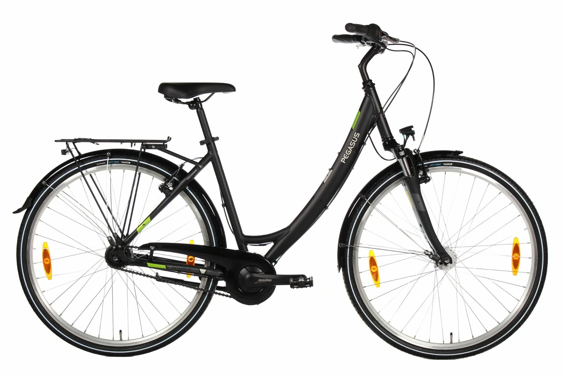 Sieben optimal abgestufte Gänge des Avanti bieten genügend Spielraum für tägliche Fahrten. Für zusätzliche Sicherheit neben den zuverlässigen V-Brakes sorgt die Rücktrittbremse. Komplettiert wird der PEGASUS Klassiker mit einer wertigen Straßenausstattung samt LED-Licht und Nabendynamo.