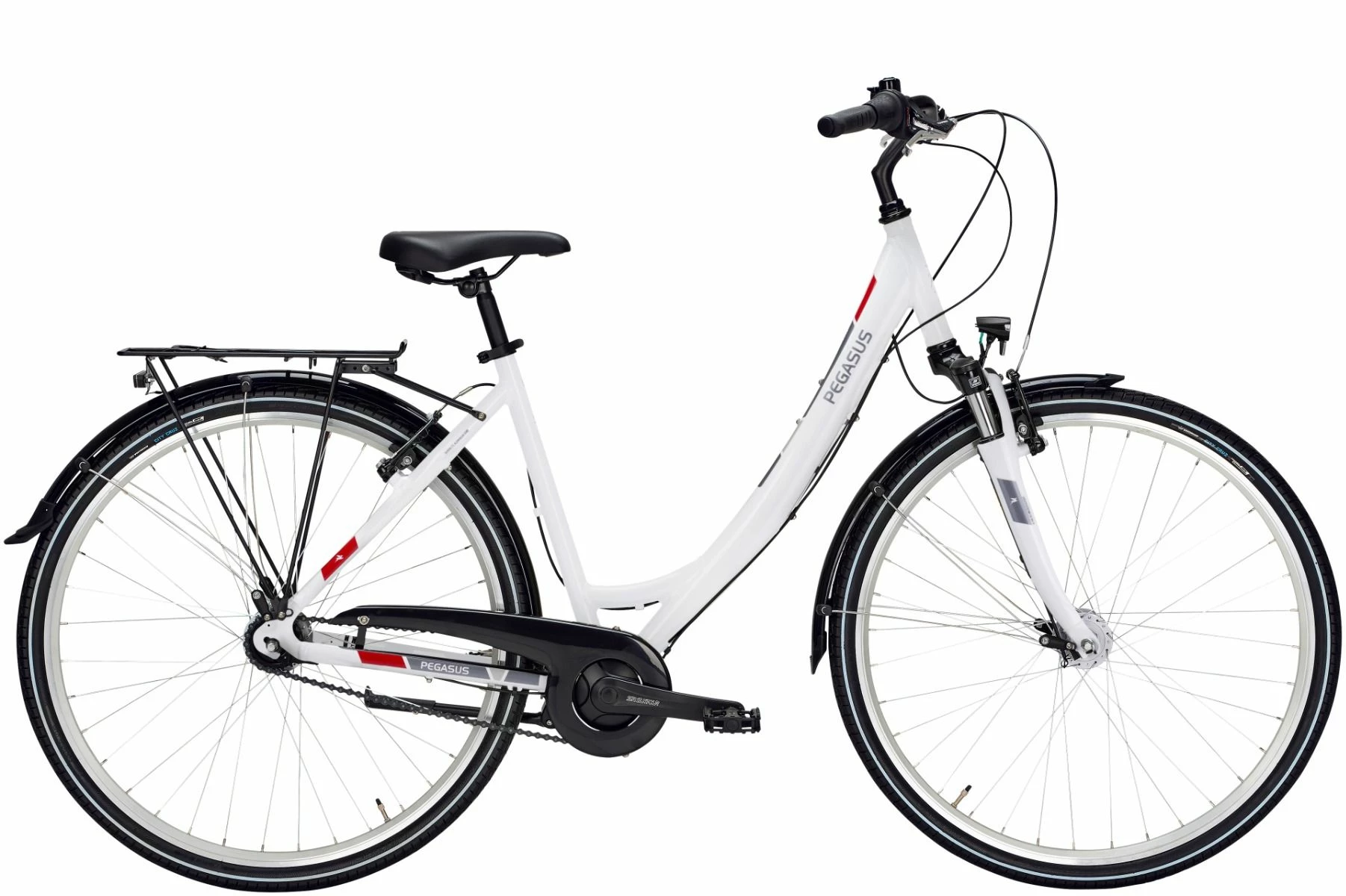 Sieben optimal abgestufte Gänge des Avanti bieten genügend Spielraum für tägliche Fahrten. Für zusätzliche Sicherheit neben den zuverlässigen V-Brakes sorgt die Rücktrittbremse. Komplettiert wird der PEGASUS Klassiker mit einer wertigen Straßenausstattung samt LED-Licht und Nabendynamo.