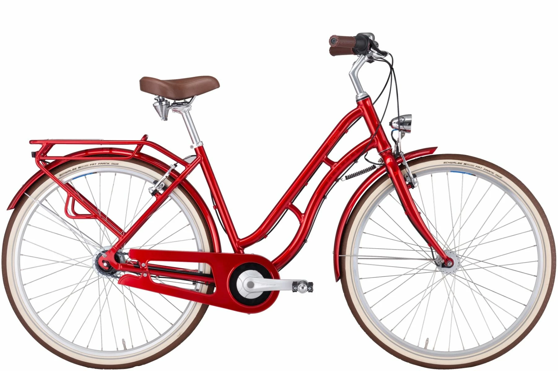 Ob farbenfroh oder elegant – das Tourina bringt echten Glanz in den Alltag. Kombiniert mit jeder Menge Komfort und robusten Komponenten, ist Fahrspaß auf allen Strecken die logische Folge. Neben dem formschönen Schwanenhals-Rahmen mit Starrgabel und Rahmengepäckträger bietet das Tourina eine mehr als zuverlässige SHIMANO 8-Gang-Nabe mit Rücktritt und die stylischen SCHWALBE Fat Frank Reifen, die zusätzlich über einen starken Pannenschutz verfügen. Komplettiert wird das Ensemble durch eine wertige LED-Lichtanlage mit Nabendynamo und Scheinwerfer im angesagten Retro-Look.