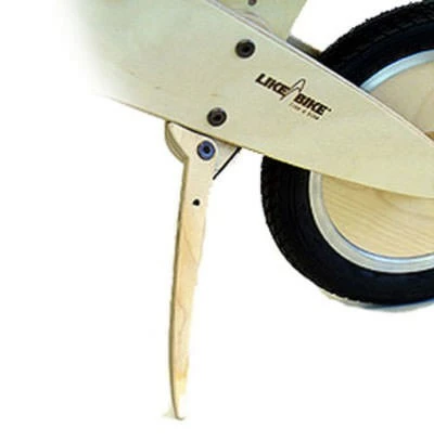 Der LIKEaBIKE Ständer läßt sich kinderleicht an alle LIKEaBIKE Modelle aus Holz montieren, er klappt beim Losfahren automatisch hoch.