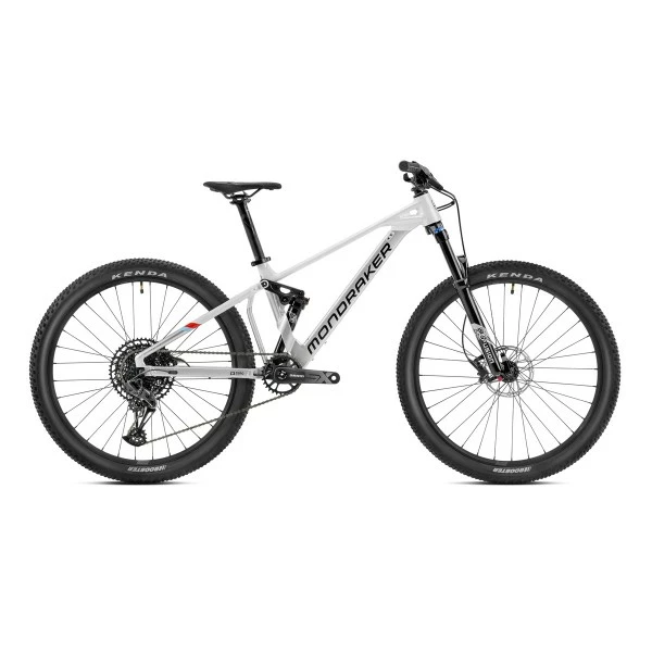 Der Aluminiumrahmen des Mondraker Factor 26 wird aus einem hydrogeformten 6061er Rohrsatz gefertigt. Der Zero Suspension Hinterbau hat 120 mm Federweg. „Zero“ steht für die Minimierung von Pedalrückschlag, Bremseinflüssen, Leistungsverlusten und vor allem die bestmögliche Absorption von Trail-Unebenheiten. Die Forward Geometrie mit großzügigem Reach und kurzem Vorbau macht das Rad schön laufruhig, wenn es mal etwas schneller bergab geht. Das Factor 26 ist für Kinder mit einer Körpergröße zwischen ca. 1,45 und 1,65m geeignet.